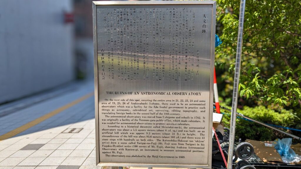 街道に戻り次の交差点(蔵前一丁目)脇に「天文台跡」の説明板があります。