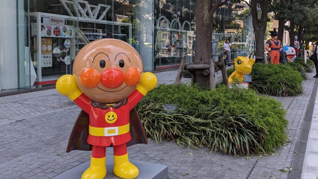 ビルの隣にはたくさんのキャラクターが並んでいて、大人も子供も一緒に写真撮影してましたよ。