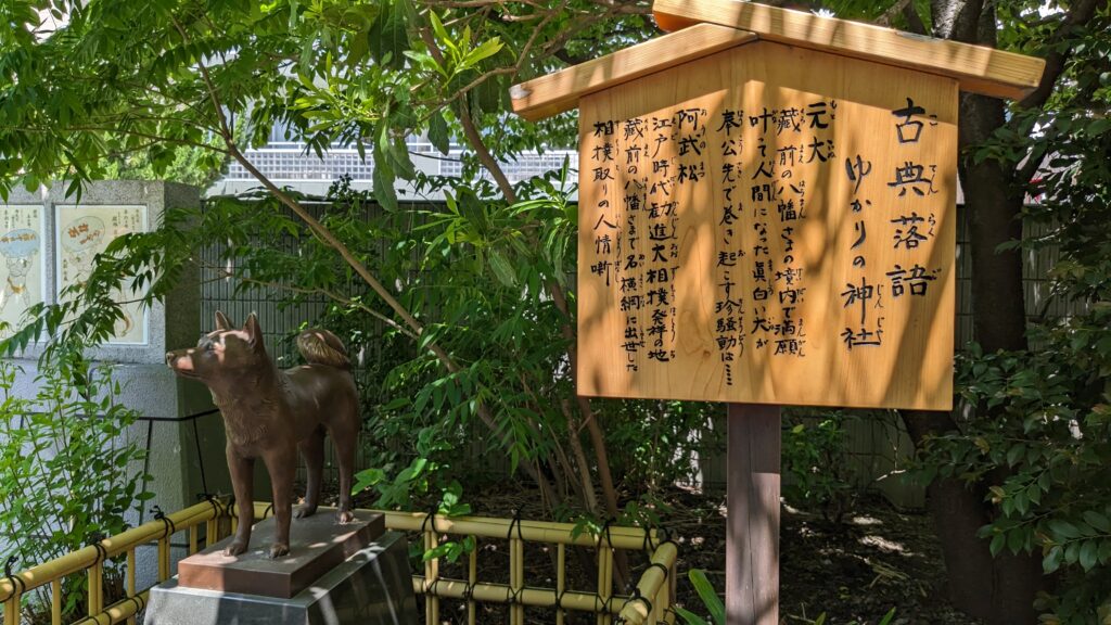 勧請大相撲の発祥の地でもあり、古典落語「元犬」の舞台にもなっているブ。長い間、庶民に愛されてきたんだブ。