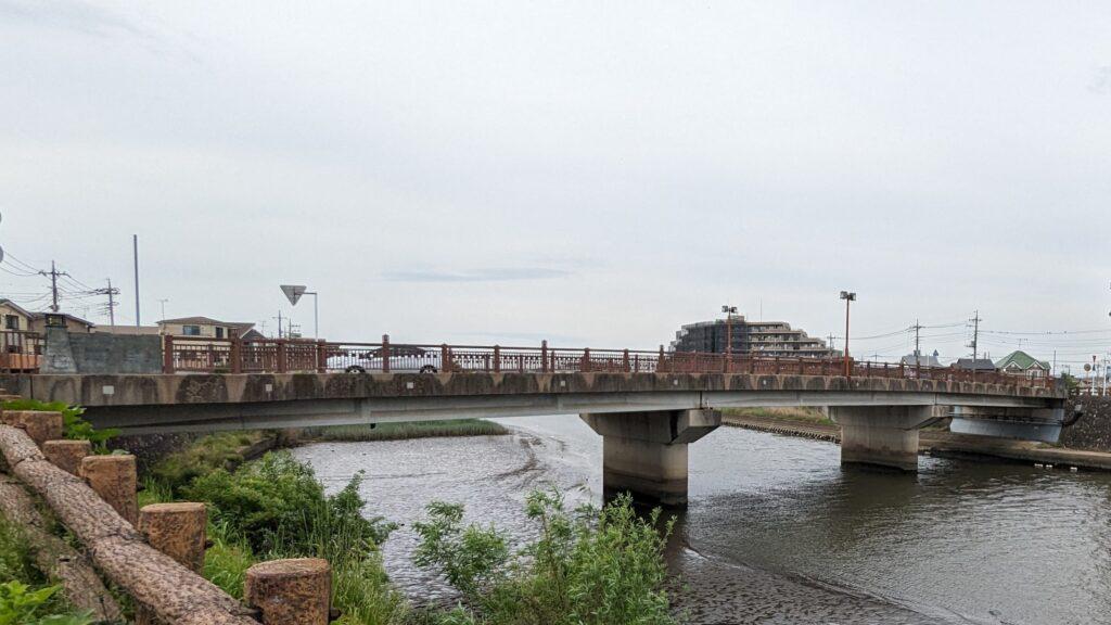 川沿いを進み、「蒲生大橋(がもうおおはし)」を渡ります。 これまでの「千住大橋」などに比べると規模は控えめですが、この橋が重要な境界線。 渡り終えると、いよいよ「越谷市」に入ります!