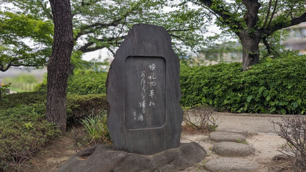 この遊歩道は、まさに文学の道。 百代橋のたもとには「松尾芭蕉文学碑」がありました。