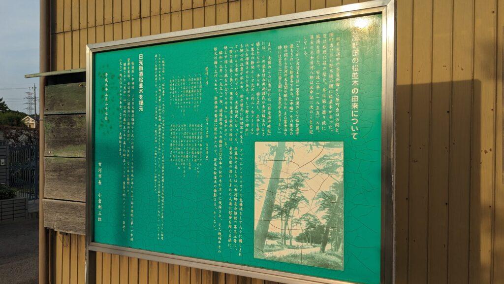 昔は立派な松並木があって「仙台道中で最も美しい松並木」「東海道にもこのように、まっすぐで平らで美しい場所はない」と評されていましたが、昭和に入り、道路拡張や戦時中の松根油の製造により伐採されてしまいました。