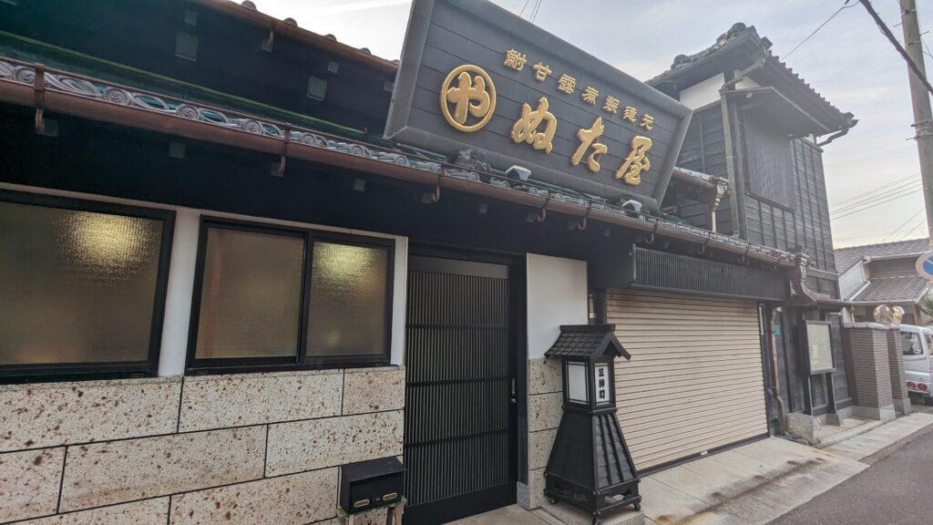 路地を進むと、老舗の甘露煮専門店「ぬた屋」が現れます。この店の建物には、長年の歴史が刻まれており、その趣き深い佇まいが周囲の風景に溶け込んでいます。