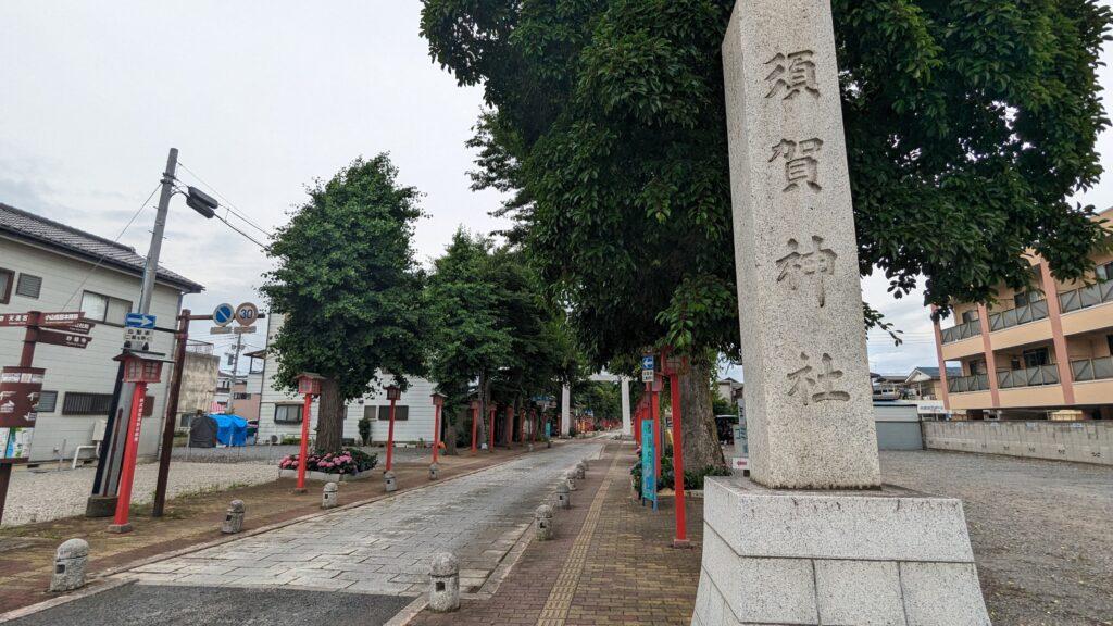 須賀神社参道入口です。参道を300m程歩くと須賀神社境内になります。