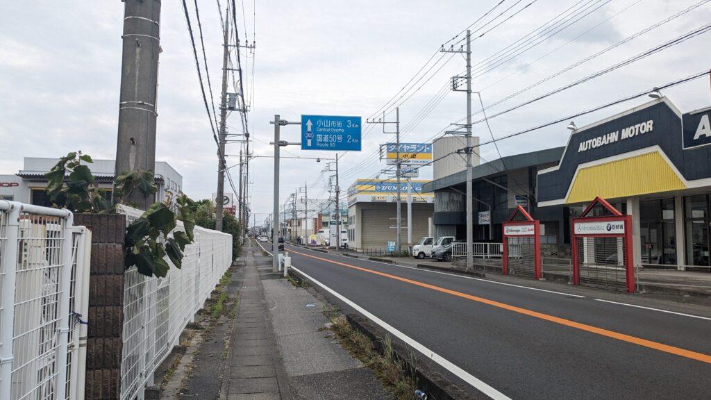 その先、国道4号を離れて265号に入ります。小山市街まであと3km。もう少しです。