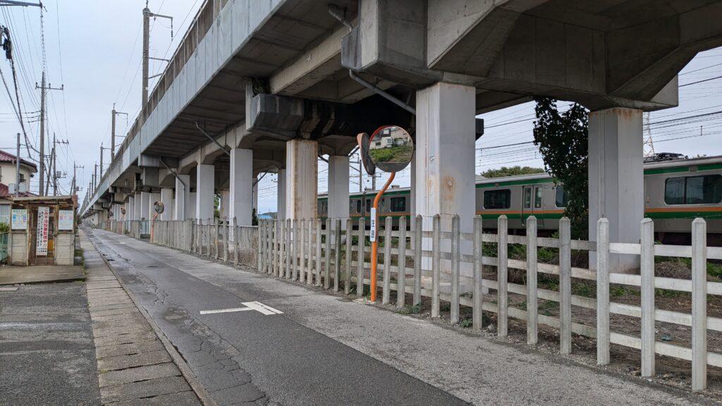 そのまままっすぐ進むと、JRの線路沿いに出ます。