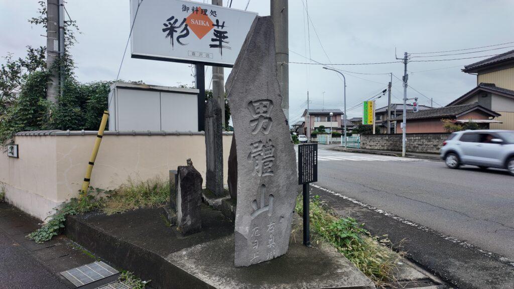 交差点を渡った先には「男體山」の石碑があり、その下方には「右奥州、左日光」という文字が刻まれています。この石碑の裏側には、供養塔や馬頭観音、日支出征馬碑など、さまざまな石碑が立ち並んでおり、地域の歴史や信仰の深さを物語っています。