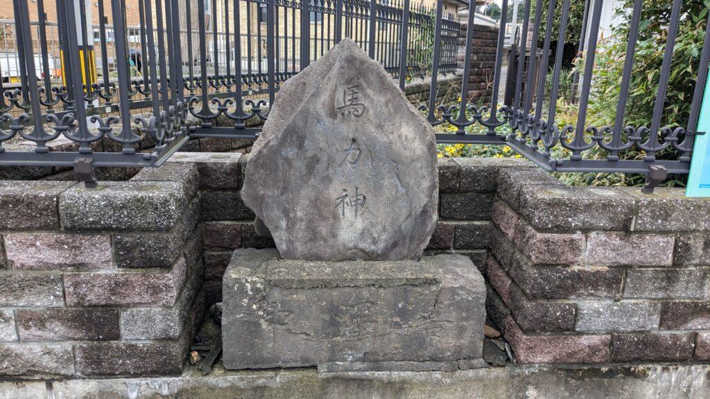 交差点の手前には「馬力神」の石碑があります。