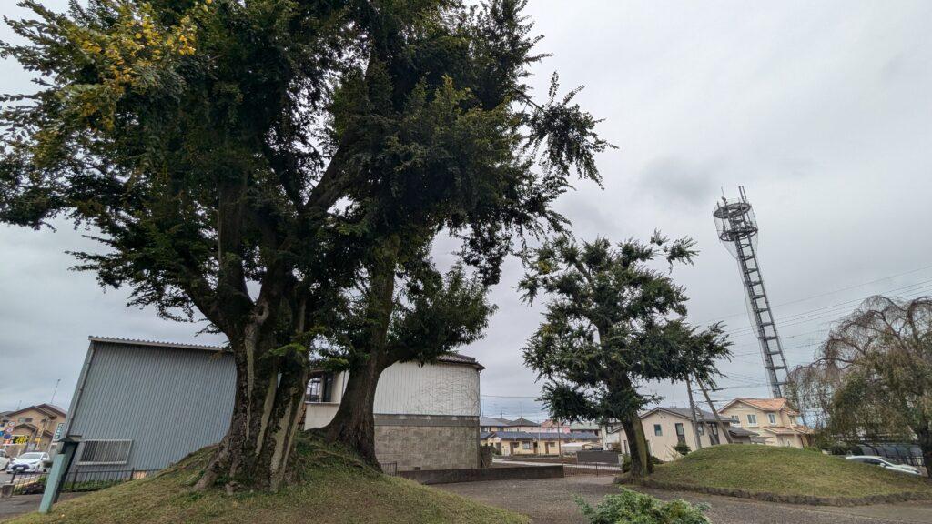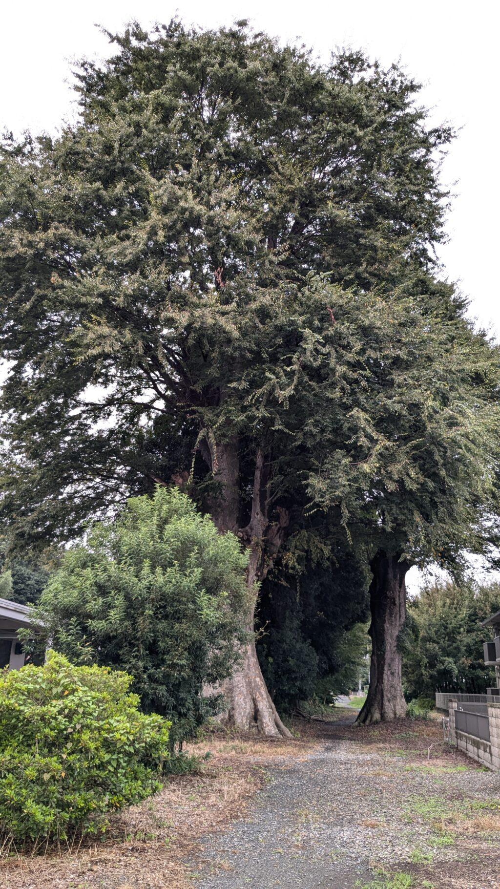 ここの参道に大きなケヤキが3本あり、それぞれ樹齢400年以上、樹高は30数メートルにも達しています。日枝神社は小山城の北の守りとして重要な役割を果たしてきたそうです。
