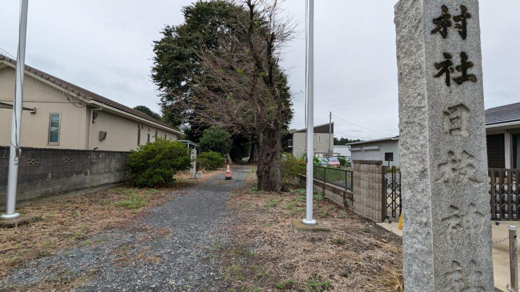 踏切から約1km歩くと、「日枝神社」の社標が目に入ります。
