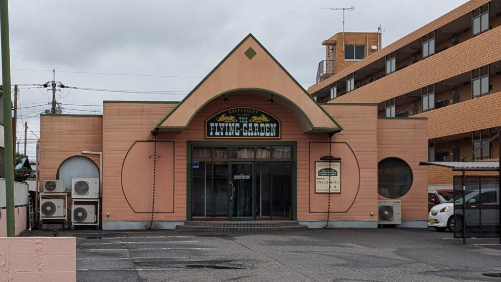 少し歩いた先の右手に見えたのは、爆弾ハンバーグで有名な「フライングガーデン」の建物。最初は店舗かと思いましたが、妻がふと違和感に気付き、調べてみるなんとここが本社だったんです。