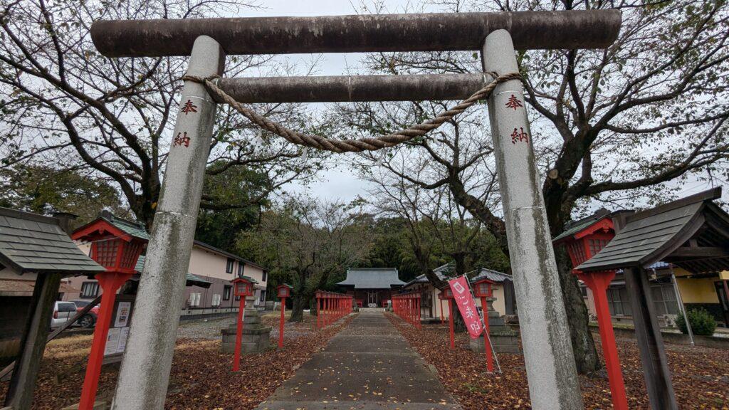 神社参道の両脇は桜の木が植えられていて、春には綺麗な桜が見られそうです。