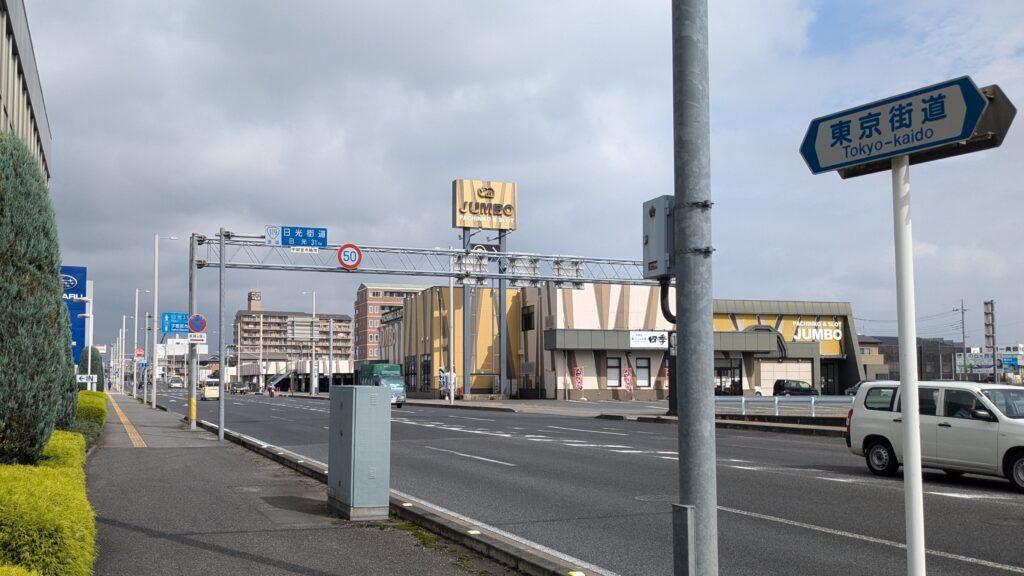「東京街道」の標識。命名のいきさつにはさまざまな背景があるのでしょうが、ここはやはり「日光街道」でよかったのでは…違和感しかない。