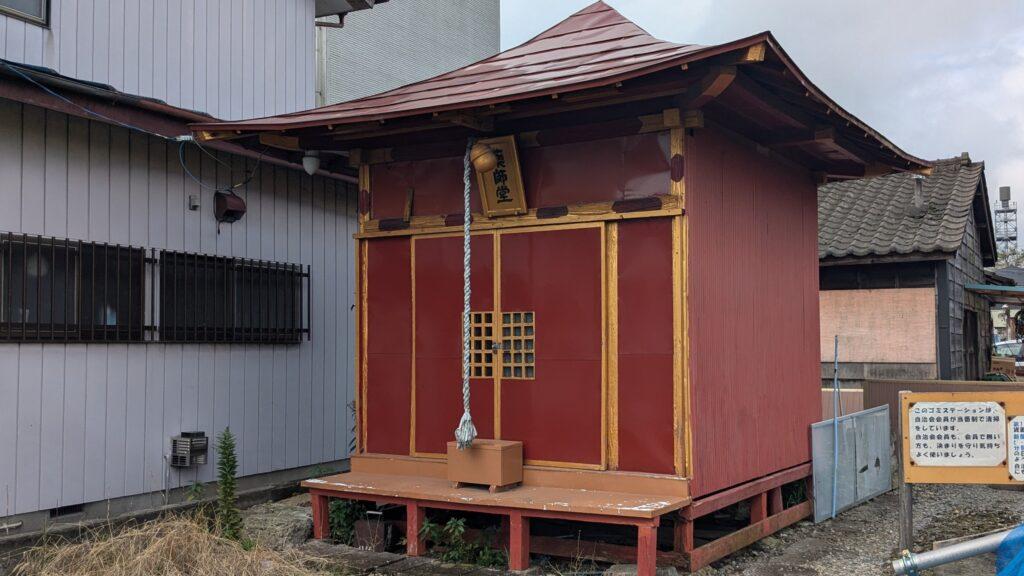 雀宮神社から2.2km程歩いた左手に寿鶴 薬師堂が現れます。目立つ色使いですね。