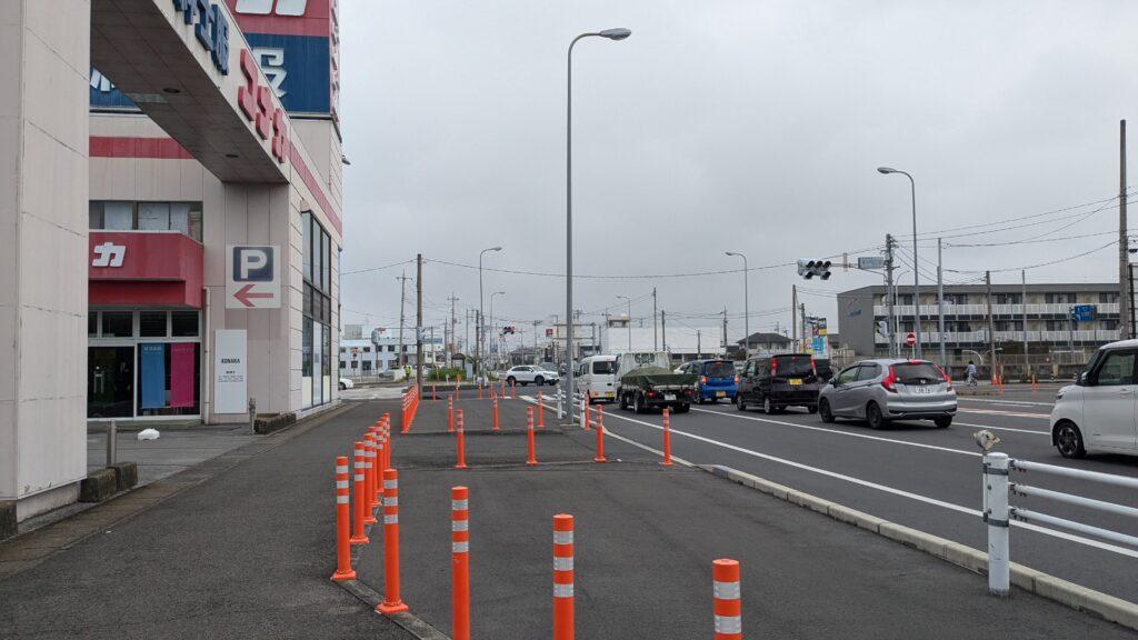 - 国道沿いで交通量は多め。市街地は片側複数車線の大通り。