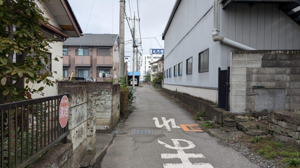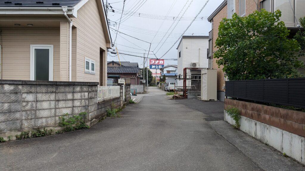お店の脇、間を通り抜けて、突き当りを右折。再び4号に戻ります。