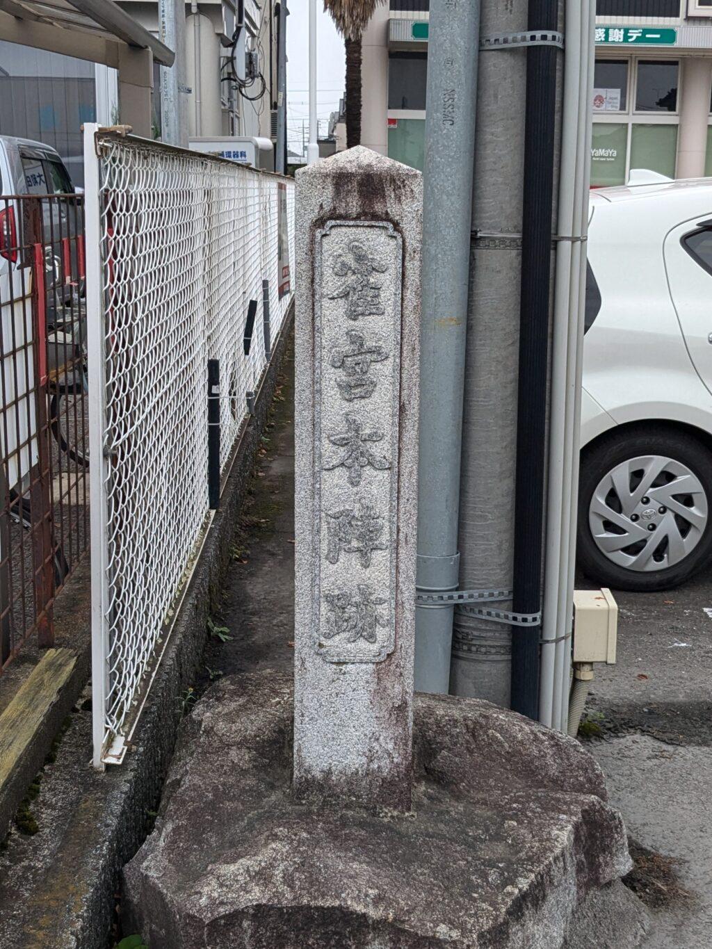 昨日歩いてきた道を少し遡って、酒屋さんの駐車場の一角に「雀宮宿本陣跡」の石柱があります。