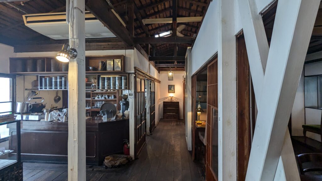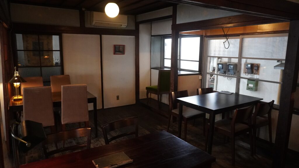 このカフェ、実は明治後期に遊郭として建てられ、昭和に増築された建物をDIYでリノベーションしたものなんです!レトロな雰囲気がゆったりとした空気を作り出していて、居心地が最高です。