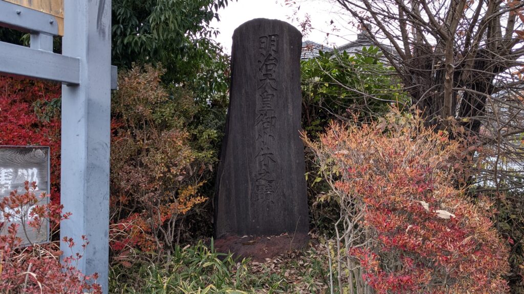 交差点から少し歩いた右手にある「今市宿 市緑ひろば」には、「今市宿、二宮尊徳翁終焉の地」と「明治天皇御小休之跡」の石碑が立っています。
