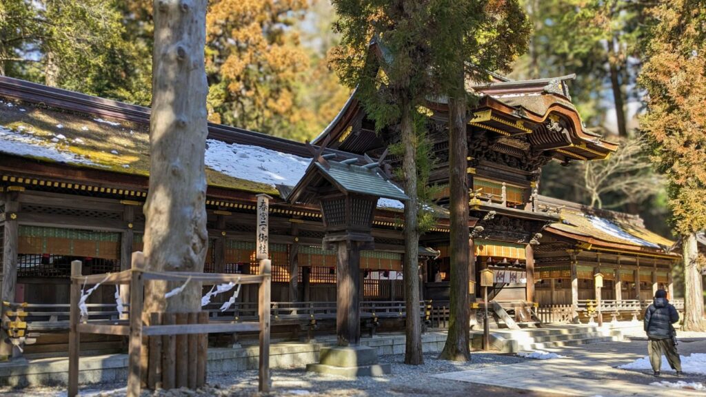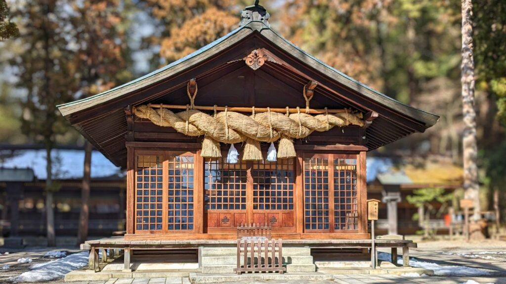 いよいよ諏訪大社四社まいりも最後の地、「下社春宮(しもしゃはるみや)」にやってきました。ここでは、国の重要文化財である「神楽殿」や「幣拝殿」が静かに佇み、訪れる人々に深い安らぎを与えてくれます。