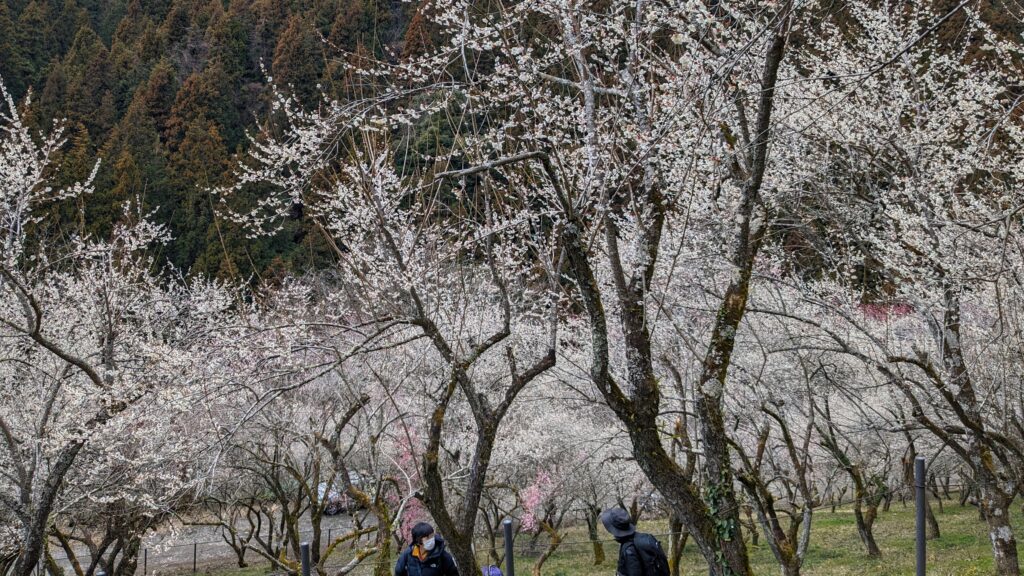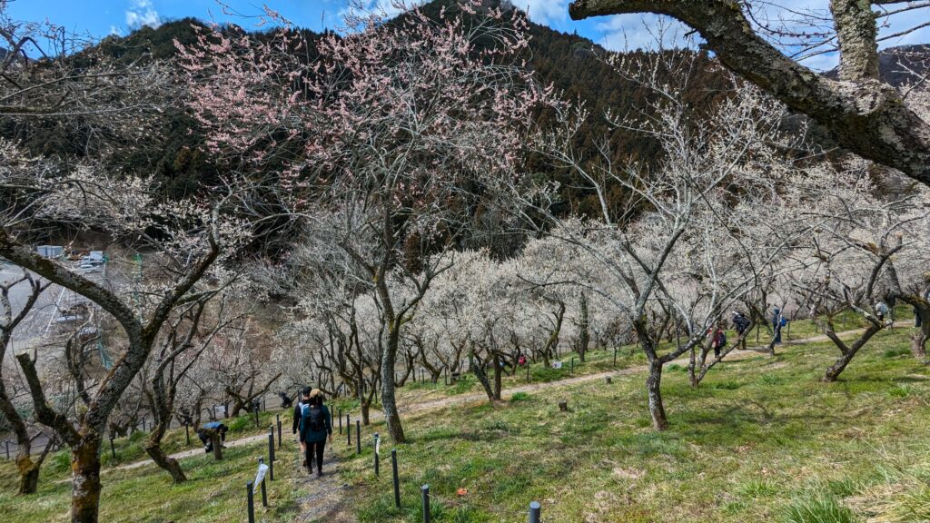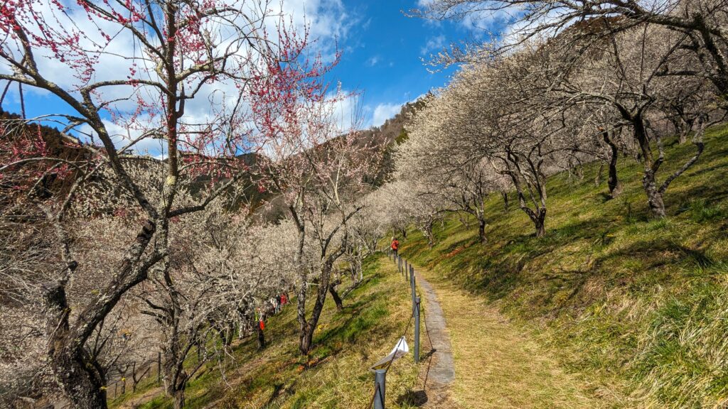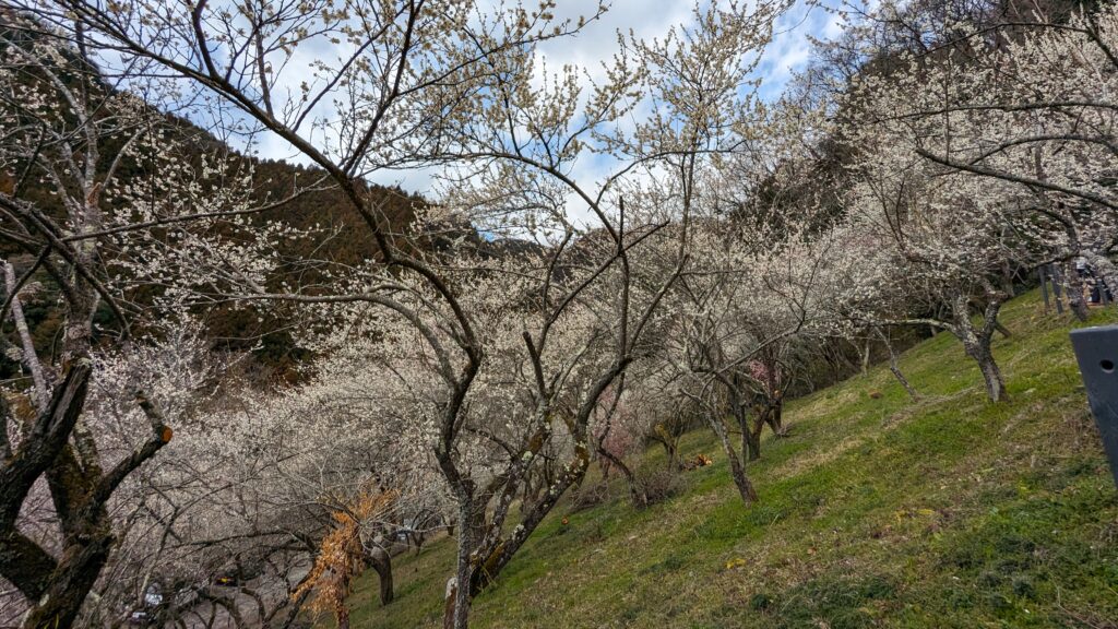 約700本が咲き誇り、他の梅林と比べ規模が大きく山の斜面に広がる梅林の光景は圧巻です。少し遠い場所にありますが、わざわざ足を運んでみる価値は十分にあります。