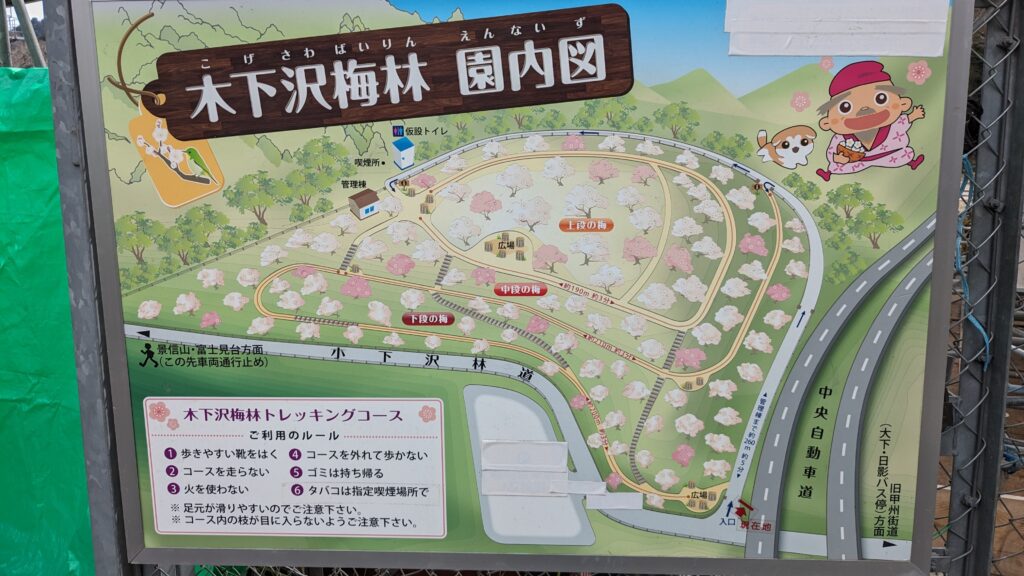 一番奥にある「小仏梅林」まで距離にして約5kmとなっています。