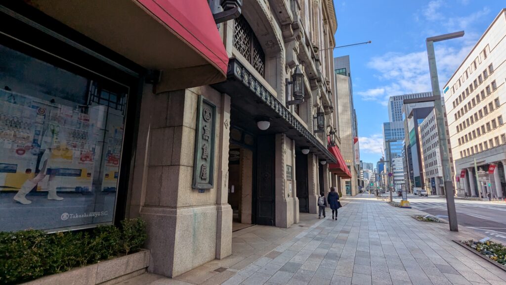 周りのビルとは少し印象の異なる建物が「日本橋高島屋」です。1831年創業の呉服店がルーツで、1933年竣工の本館は和洋折衷の美しさで重要文化財となっています。百貨店建築の歴史を伝える貴重な存在として、日本橋を象徴するランドマークとなっていますね。
