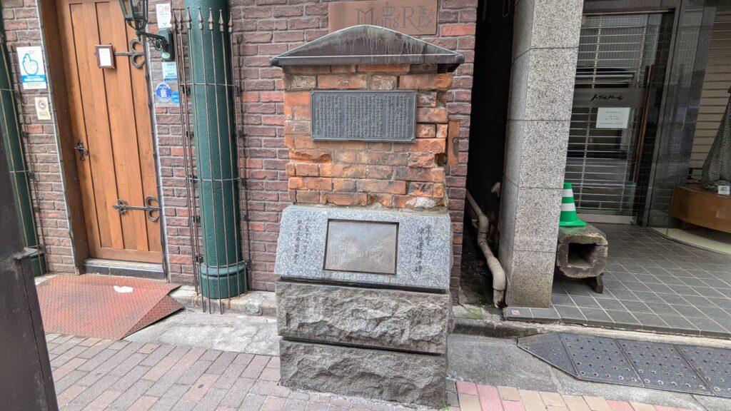 中央通りから一本東に入った金春通りに、ひっそりと佇む「銀座煉瓦街の碑」があります。