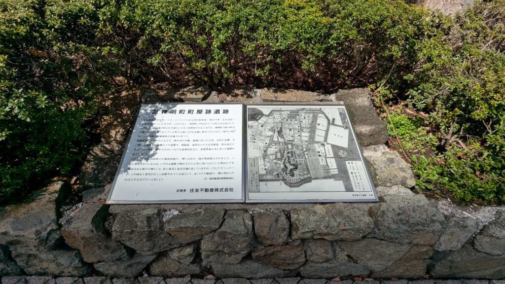 路地裏にはひっそりと「芝神明町町屋敷跡遺跡」がありました。