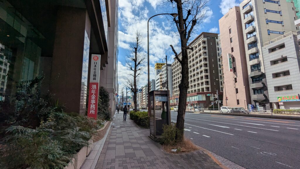 その先暫く、少し落ち着いたオフィスビル街を進みます。