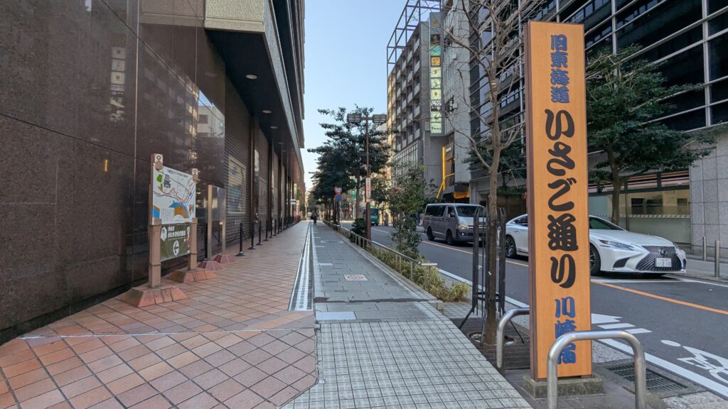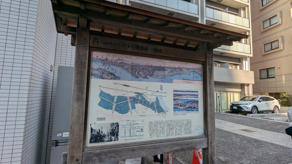川崎宿を歩いてみると、品川宿同様に宿場町の歴史を示してくれる案内板や標識がたくさんあることがわかります。
