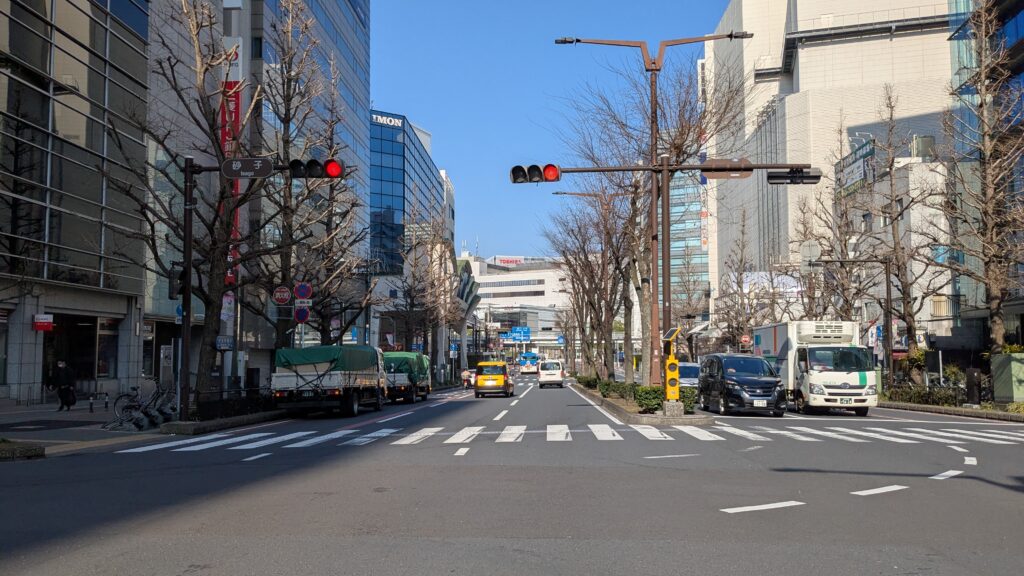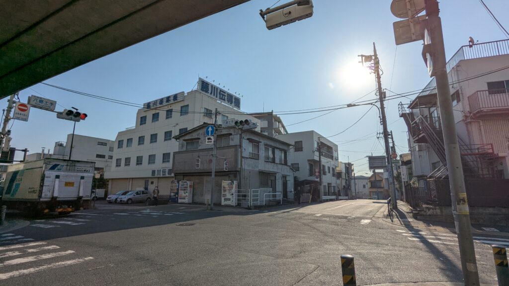 交差点を過ぎた後は少し落ち着いた街並みに変わっていきます。