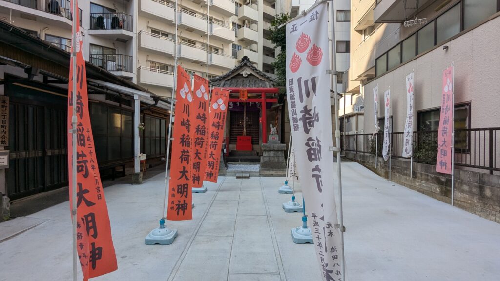 「川崎稲荷社」はビルやマンションに囲まれた場所にこじんまりと佇んでいます。