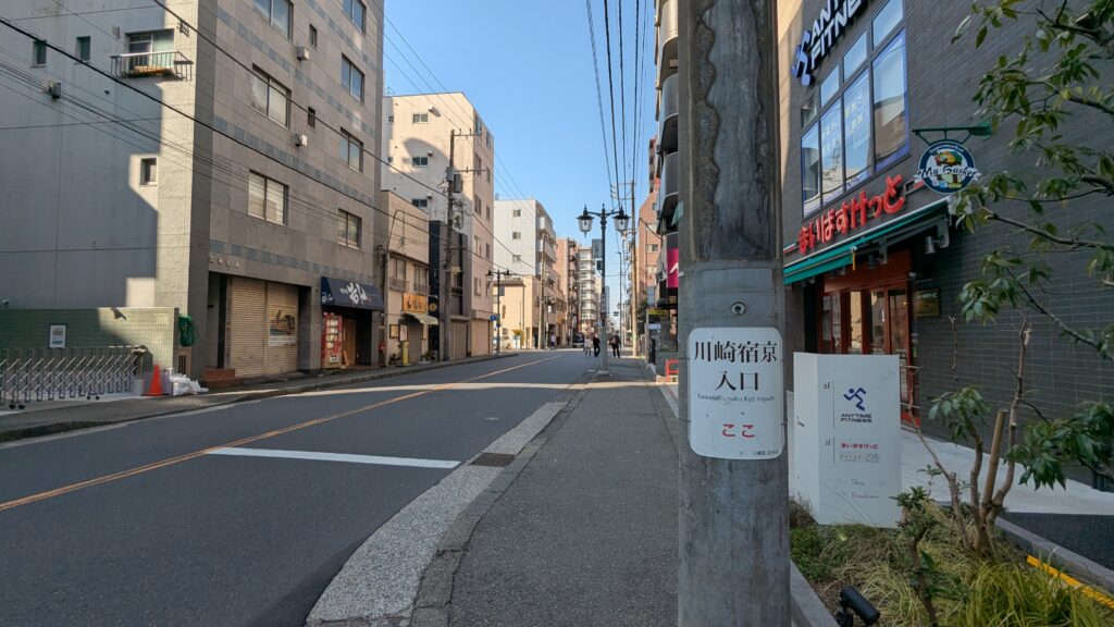 そしてついに、電柱に貼られた「川崎宿京入口」の文字を発見! これ、実は「史跡センサー」全開の妻が見つけてくれたんです。私一人だったら、絶対に見落としてスルーしていた自信があります。