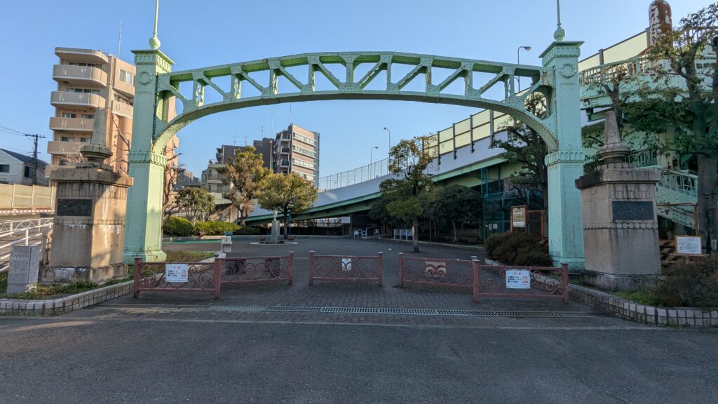 その先北野神社の隣、六郷橋のたもとにある公園に「旧六郷橋の橋門」があります。