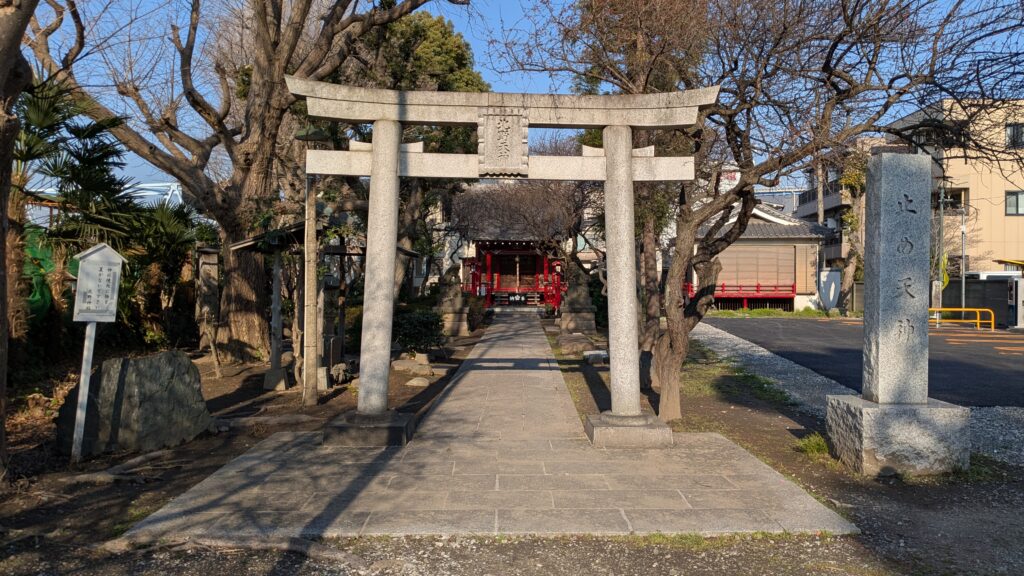 創建年代は不明ながら江戸時代中期には既に存在していました。八代将軍徳川吉宗が付近で落馬を免れた際、この神社の加護とされ、「止め天神」と呼ばれるようになりました。以来、災難除けの神として信仰を集め、特に「落ちない」ご利益から学業成就を願う人々が多く訪れているそうです。