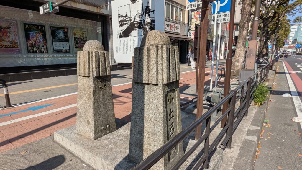 この交差点の一角に静かに佇んでいるのが「小土呂橋の親柱」です。