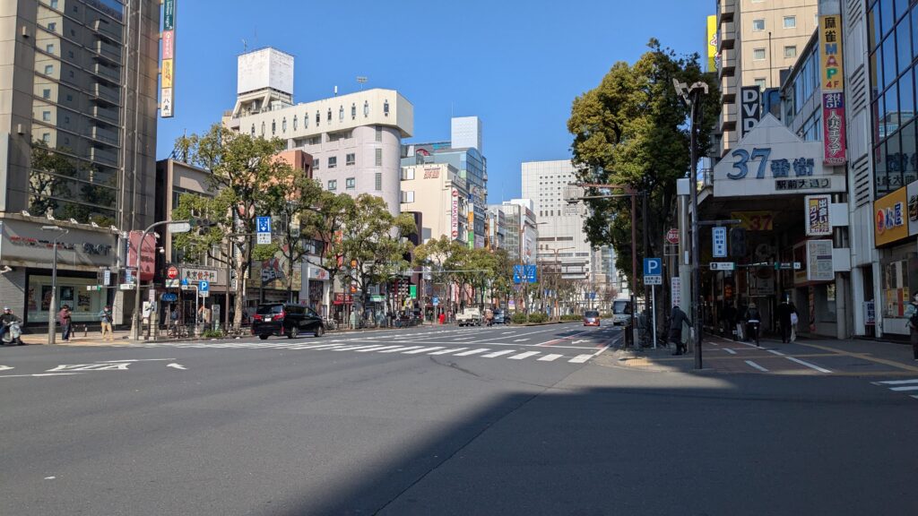 飲食店が立ち並ぶ通りを抜けると、南側の駅前通りに出ます。