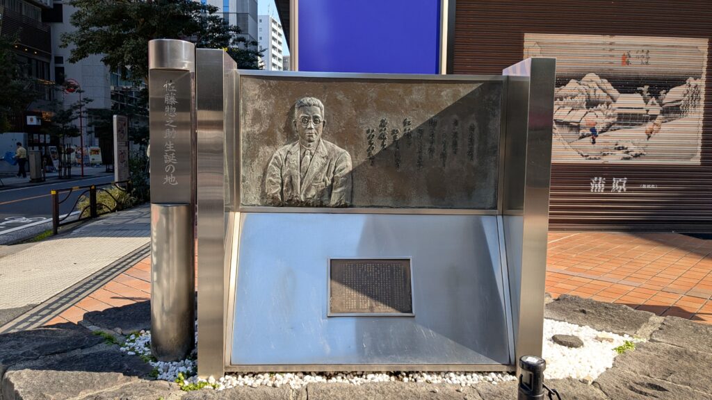 佐藤本陣跡の向かい側、川崎信用金庫の敷地内に「佐藤惣之助生誕の地」碑がありました。