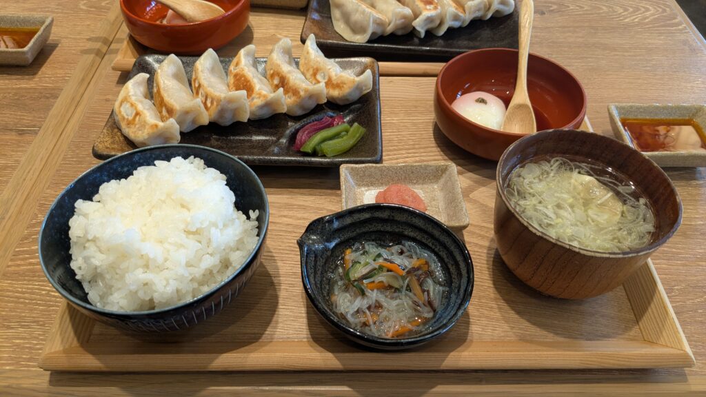 注文したのは「究極の餃子定食」。嬉しいことにご飯のおかわりは自由です。午後の散策に向けて、しっかりエネルギーをチャージしました。