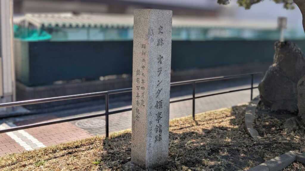 公園の入り口に到着すると、歴史ツアーの一行と思われる方々で賑わっていました。ここ神奈川通東公園は、かつての神奈川宿の東の入り口にあたります。公園内には「オランダ領事館跡」の石碑が静かに佇んでいます。