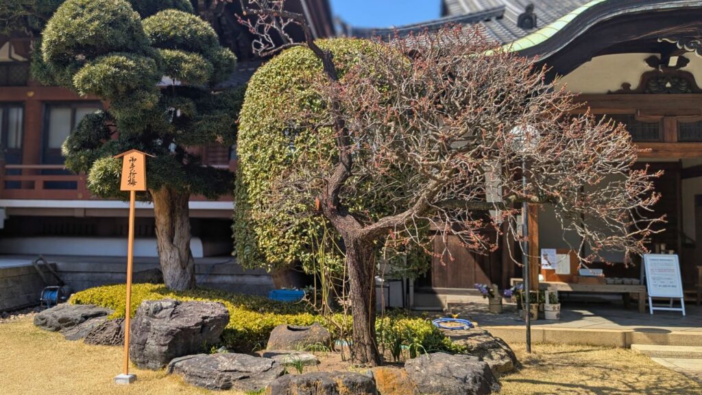 慶長4年(1599)に徳川家康より寺領10石を拝領、十石の朱印地を許され、多くの末寺を擁する中本寺格の寺院となりました。本堂前には、徳川家康の「御手折梅」と称された梅の古木があります。
