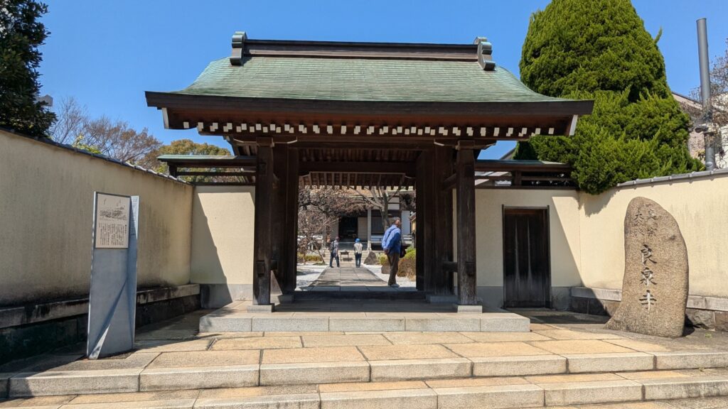 開国当時、幕府から外国領事館に指定するとの通達を受けた際、当時の住職は「外国人に寺を貸すのは忍びない」と考えたのでしょうか。なんと本堂の屋根を自ら剥がして、「現在修理中につき、お貸しできません」と断ったと伝えられています。山門前の解説板にもそのユニークな歴史が記されており、当時の人々の複雑な心情が透けて見えるようですね。