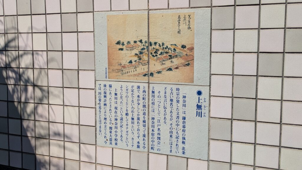 「神奈川」の由来の一説である「上無側(かみなしがわ)」や、当時の神奈川宿についての解説があります、地元の歴史に触れられます。