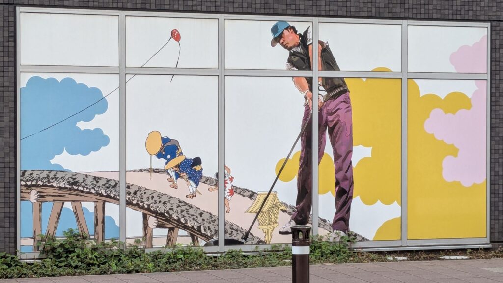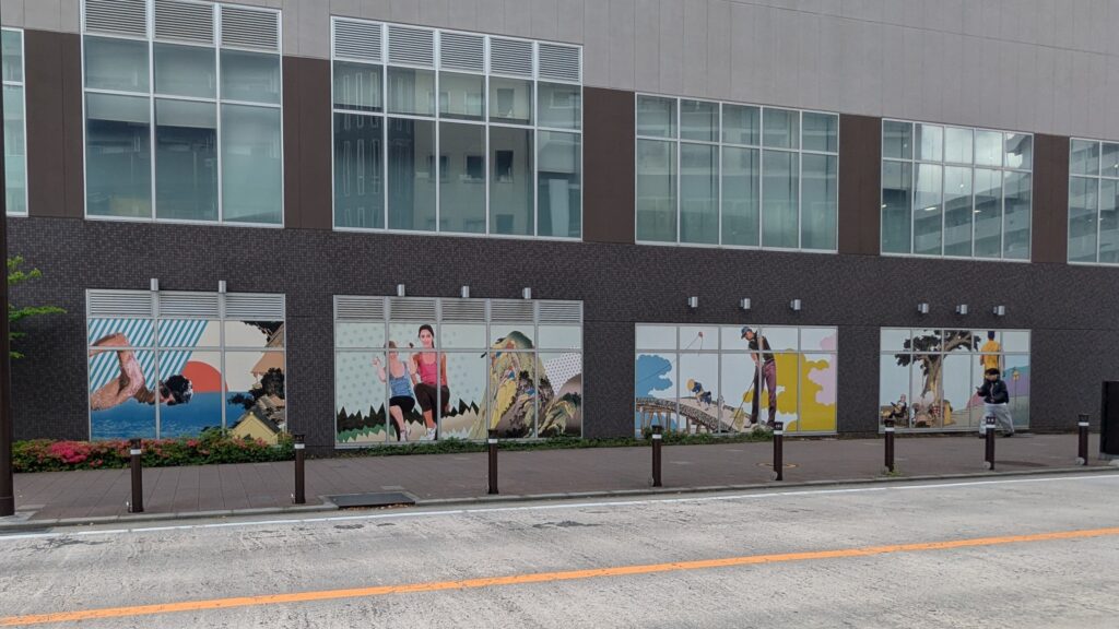 何気なく通り過ぎようとしたスポーツクラブの建物に、ふと違和感を感じて立ち止まりました。よ〜く見てみると…なんと壁面に浮世絵が!これはまさかのコラボレーション。現代的な建物と江戸の風情が、思いがけず同居しているのが面白いですね。