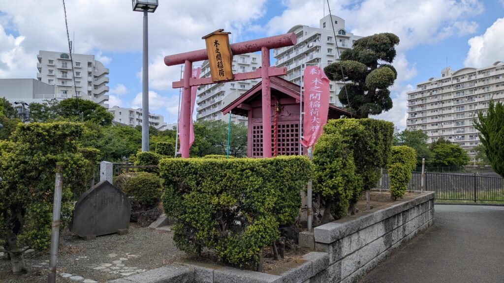 柏尾川吉田橋のたもとに佇む「木之間稲荷社」です。
