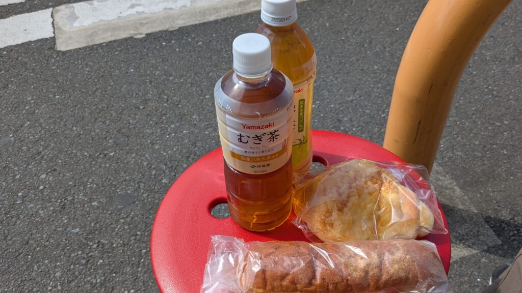 赤関橋を渡ったところにコンビニがあったので、出発して間もなくですが、飲み物を調達するのに立ち寄りました。デイリーヤマザキで大きな自家製パンコーナーがあったので、ついでにパンも購入していただきました。
