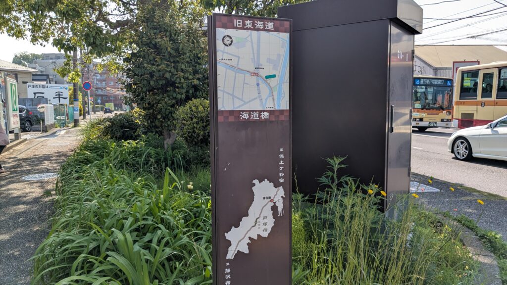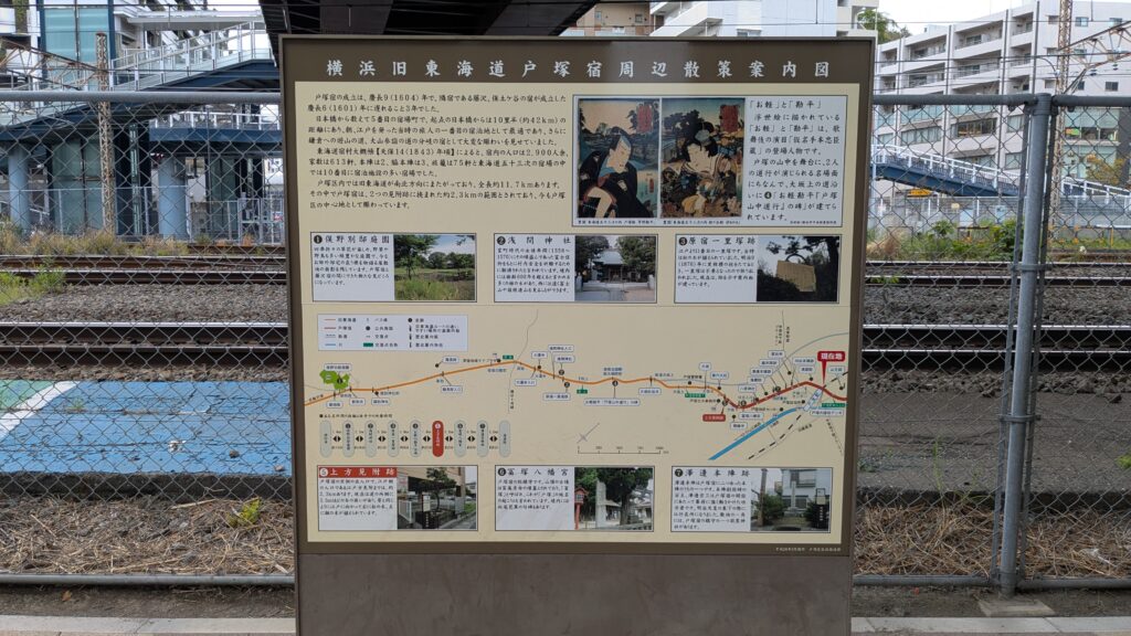 戸塚の歴史や見どころがダイジェストでまとめられていて、これがなかなか見応えあります。初めて歩く人にとっては、まさにありがたい観光ガイドといった感じです。街道沿いに何があるのか、位置関係もパッとわかるので、ここで一度足を止めてルートを確認するのもおすすめです。