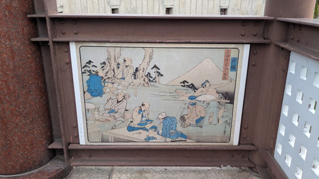 ここにも浮世絵がありました。下方には東海道五十三次の文字も。