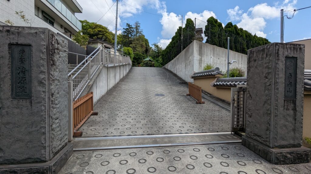 跨線橋を渡ってさらに歩道橋を進むと、「清源院」が姿を現します。ここは、なんと徳川家康の側室だった「お万の方」ゆかりのお寺なんです。